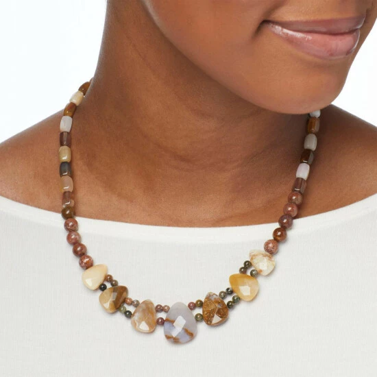 The beautiful earth-tone colors of this handcrafted gemstone necklace make it perfect for pairing with all your favorite fall fashions. From Jay King.