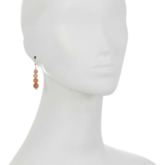 Jay King Sterling Silver Peach Stone Bead Drop Earrings