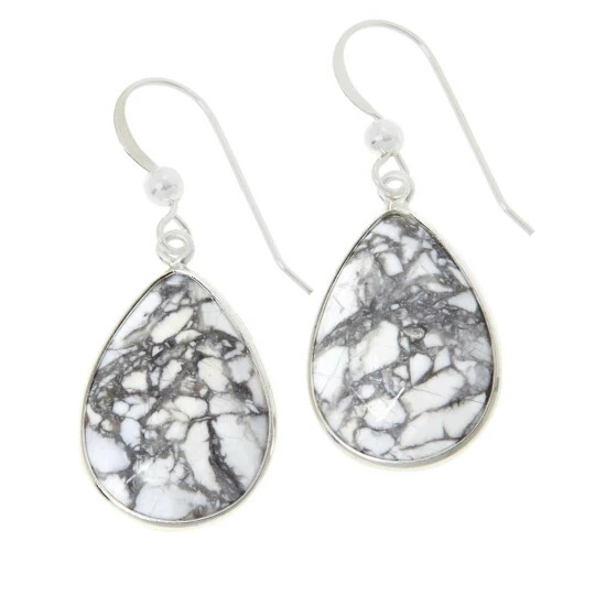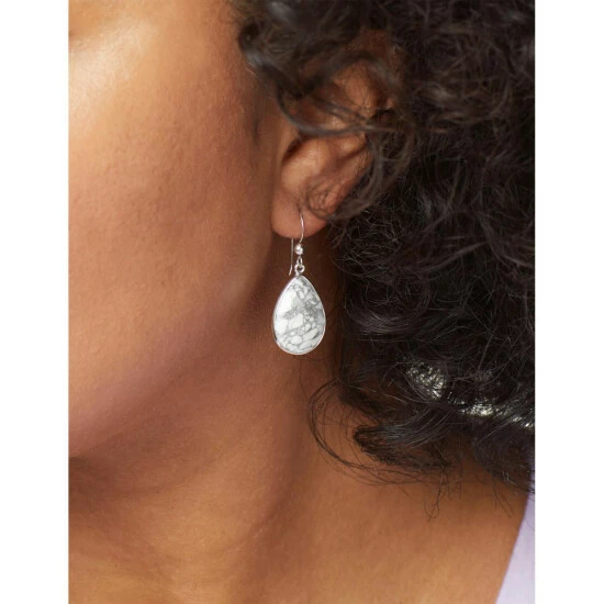 - Sterling silver earrings have bezel-set, pear-shaped drops