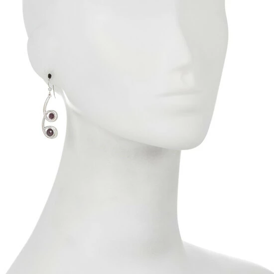 - Earring drop design hastwo loops with faceted, round pink sapphire stones bezel-set in centers