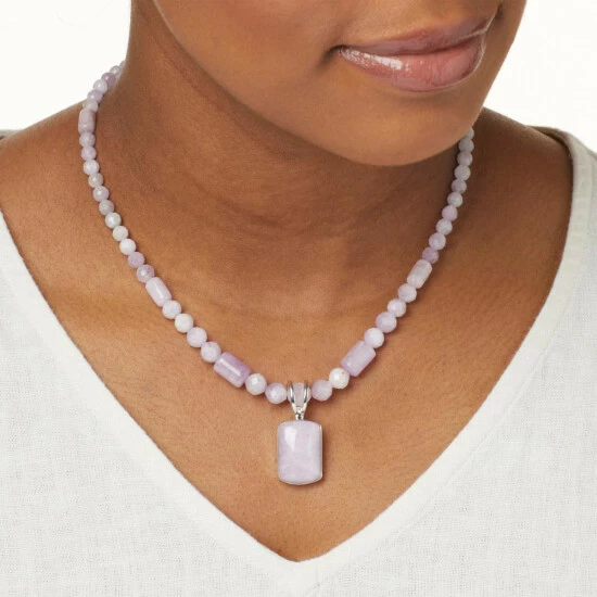 The pretty purple kunzite in this handcrafted pendant and beaded necklace combo comes from Nigeria. Its pale, pastel coloring is perfect for pairing with chic, summertime fashions. From Jay King.
