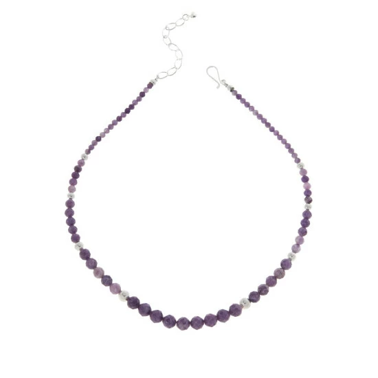 Adorn your neckline with a single strand of pretty purple lepidolite beads from South Africa. This handcrafted necklace features polished sterling silver bead stations throughout for a chic, stylish look.