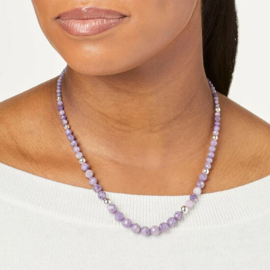 Jay King Sterling Silver Purple Lepidolite Bead Station Necklace