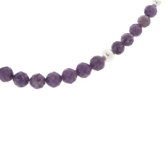 - Necklace has faceted round, purple lepidolite beads strung in slightly graduated profile