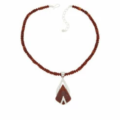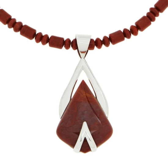 Make a bold style statement with red jasper from Madagascar. Set into a contemporary styled silver pendant and fashioned into a coordinating beaded necklace, this natural stone brings a vivid pop of red to any outfit.