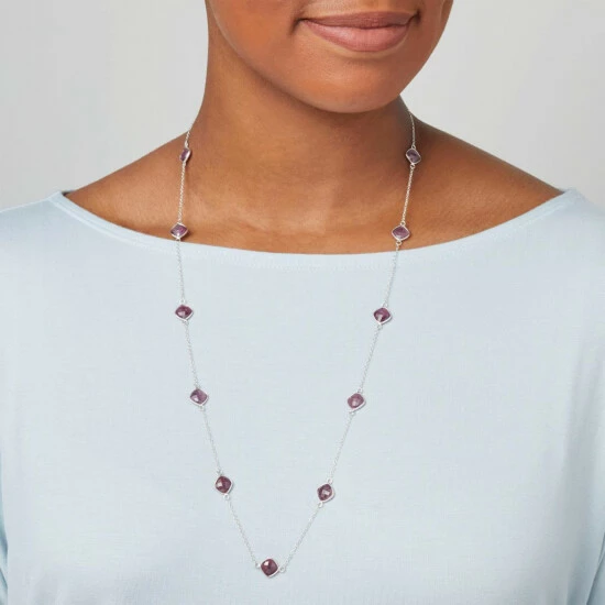 Jay King Sterling Silver Ruby Station 30″ Chain Necklace