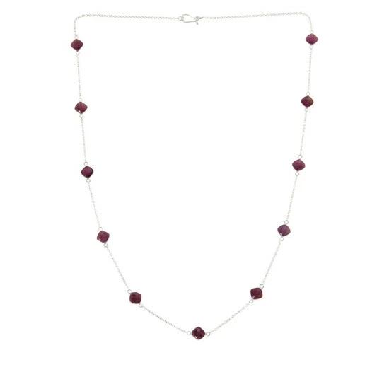 - Sterling silver, round-link chain necklace has 11 cushion-cut, natural ruby stations