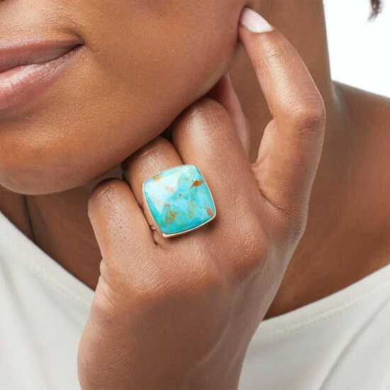 This handcrafted, sterling silver ring features compressed nuggets of Southern Arizona turquoise in a big, bold ring design that’s sure help you stand out from the crowd! From Jay King.