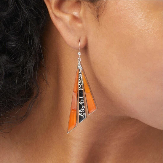 Vivid orange tangerine chalcedony inlaid into a contemporary design, make these sterling silver earrings a great choice for fun, colorful accessorizing.