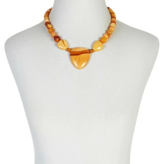 - Stones in this necklace display various natural shades of yellow, cream and brown