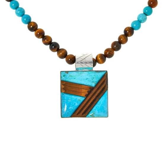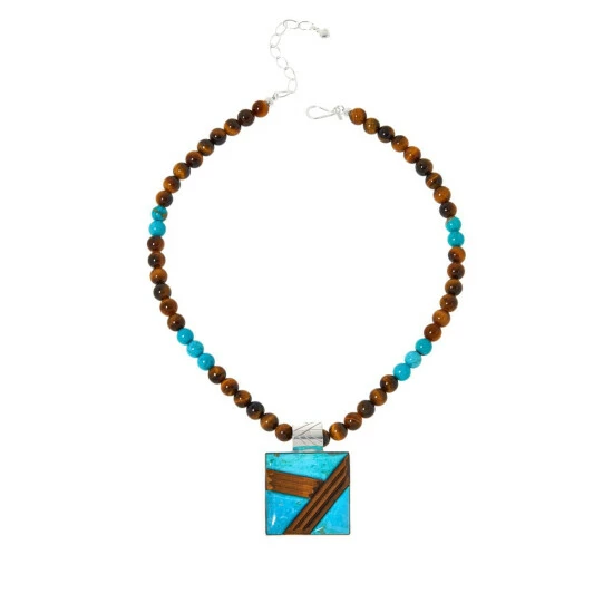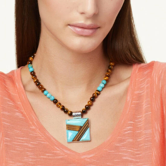 Jay King Tiger Eye and Sonoran Turquoise Bead Pendant-Necklace