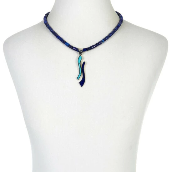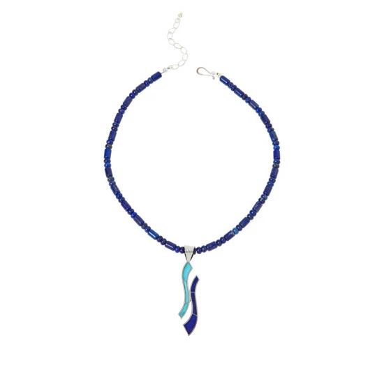 Jay King Turquoise and Lapis Inlay Pendant with Bead Necklace