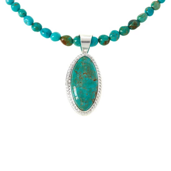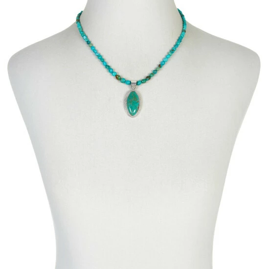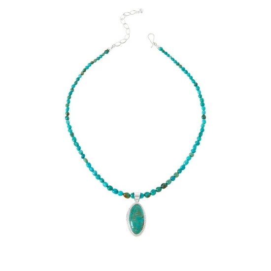 Beautiful Chilean turquoise from high in the Andes Mountains and an elongated oval shape, makes this handcrafted sterling silverpendant a great choice for everyday accessorizing. Wear it with or without the included turquoise bead necklace for colorful, casual-chic looks. From Jay King.