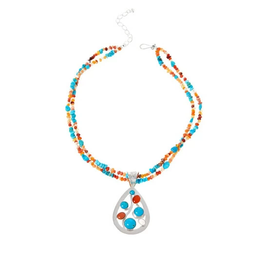 Jay King Turquoise & Multicolor Jelly Opal Pendant with Bead Necklace