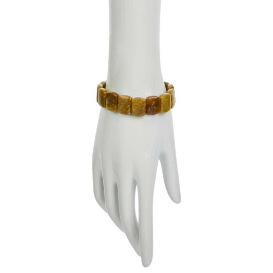 - Bracelet has cushion-cut green opal beads strung on jeweler’s elastic