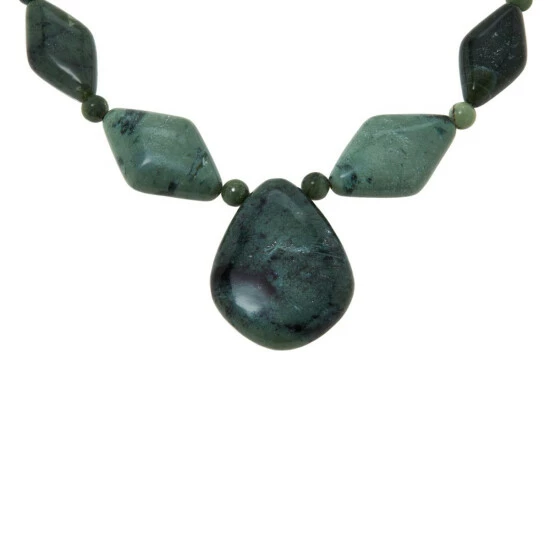 Make a statement with this lovely pendant-necklace of watermelon skin stone – new material from Brazil namedfor its unique color.